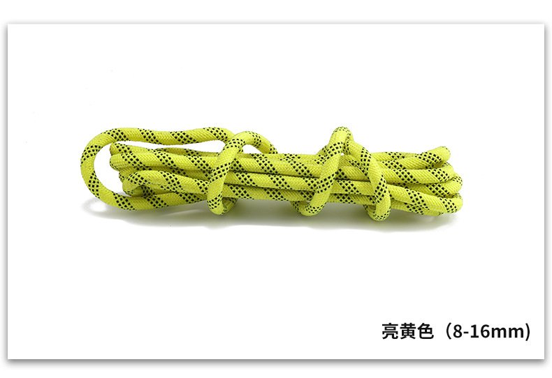 戶外攀巖安全救生繩索、高強滌綸速降繩、高空作業(yè)繩、逃生求生繩子。材質:滌綸 直徑:8-16mm 顏色:多款可選 拉力強度:16-45KN 適用范圍:戶外登山攀巖,徒步穿越,野營救生,拓展訓練。外皮采用高強度滌綸加強絲,耐臟耐磨易清理。