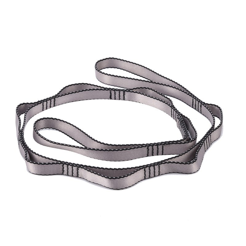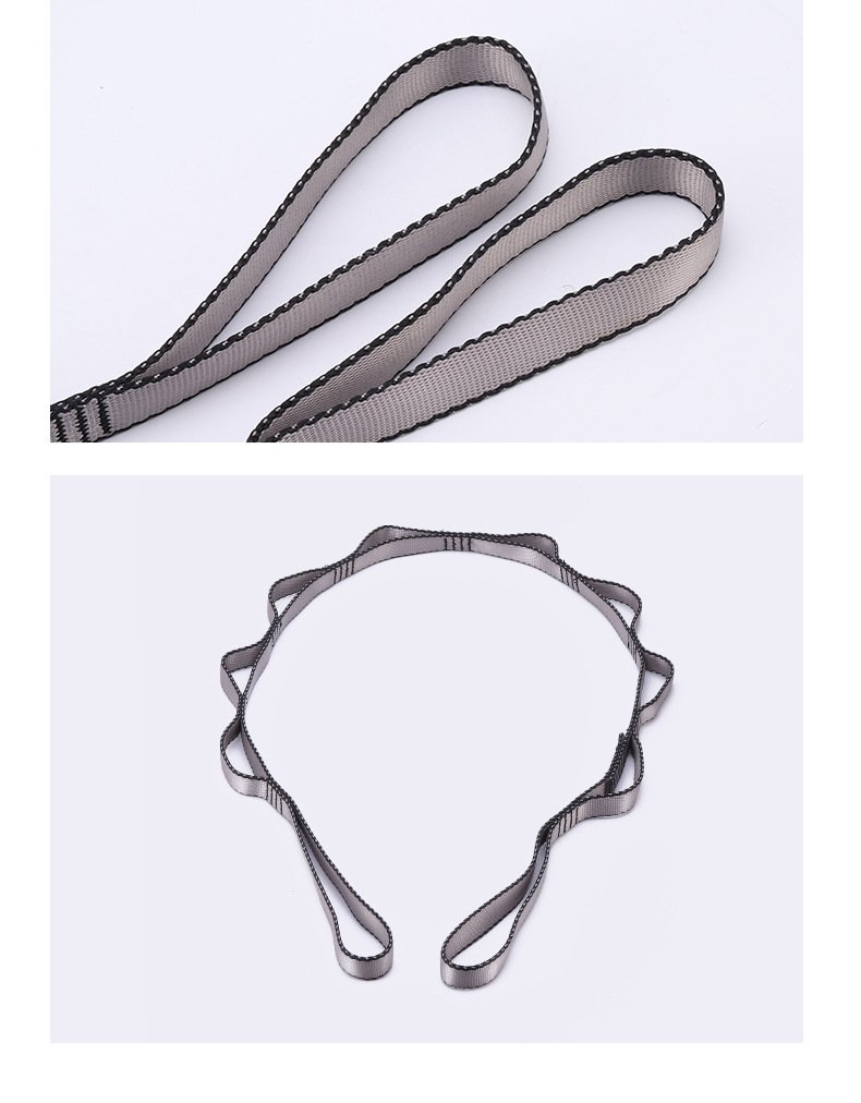 空中瑜伽吊床延長織帶,伸展帶,高強度登山菊繩吊帶。細膩質感:滌綸材質緊密扎實,耐磨性好。高強縫線:四道高強滌綸縫線承重力強,更加抗拉。多格小扣型:輕松解決掛上一格太高,掛下一格又太低問題。