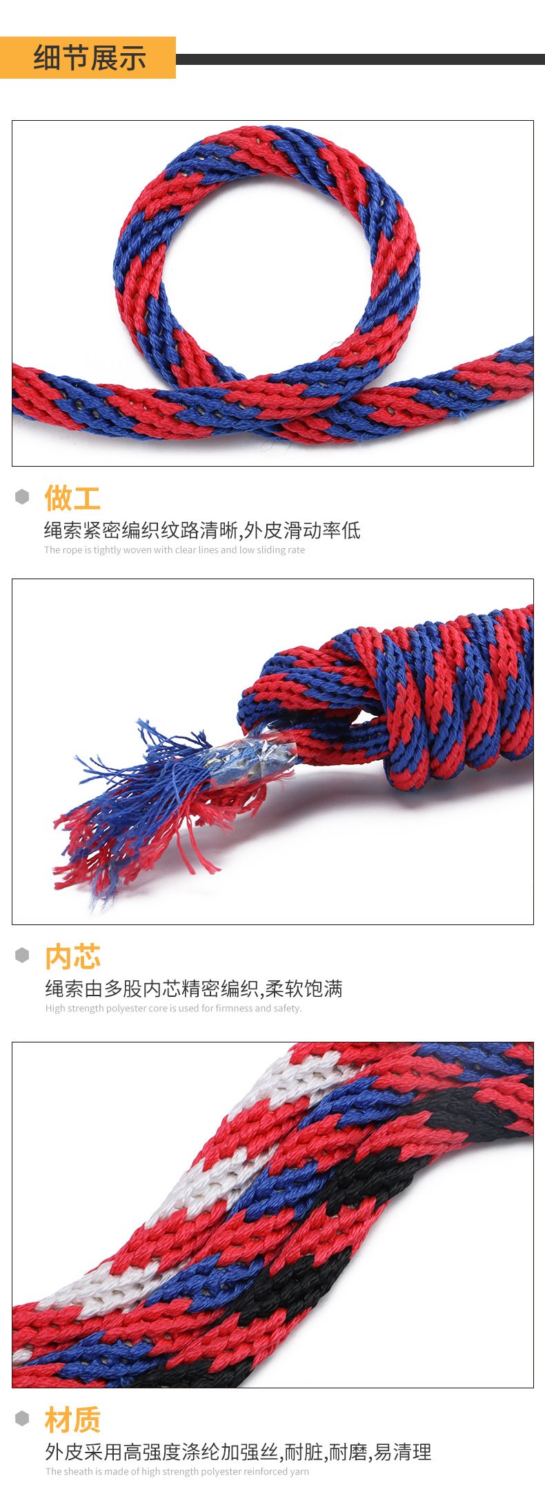 編織繩,馬韁繩,寵物繩,牽馬繩。材質(zhì):滌綸 直徑:4-20mm 顏色:多款可選 拉力強(qiáng)度:100-5000kg 適用范圍:高空作業(yè)、游樂園裝飾,工業(yè)起重等。